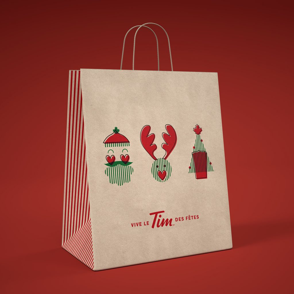 The brief called for a simple but charming social campaign showcasing Tim Hortons’ 2021 Christmas packaging, decorated with adorable character illustrations destined for takeaway cups, bags, and doughnut boxes.