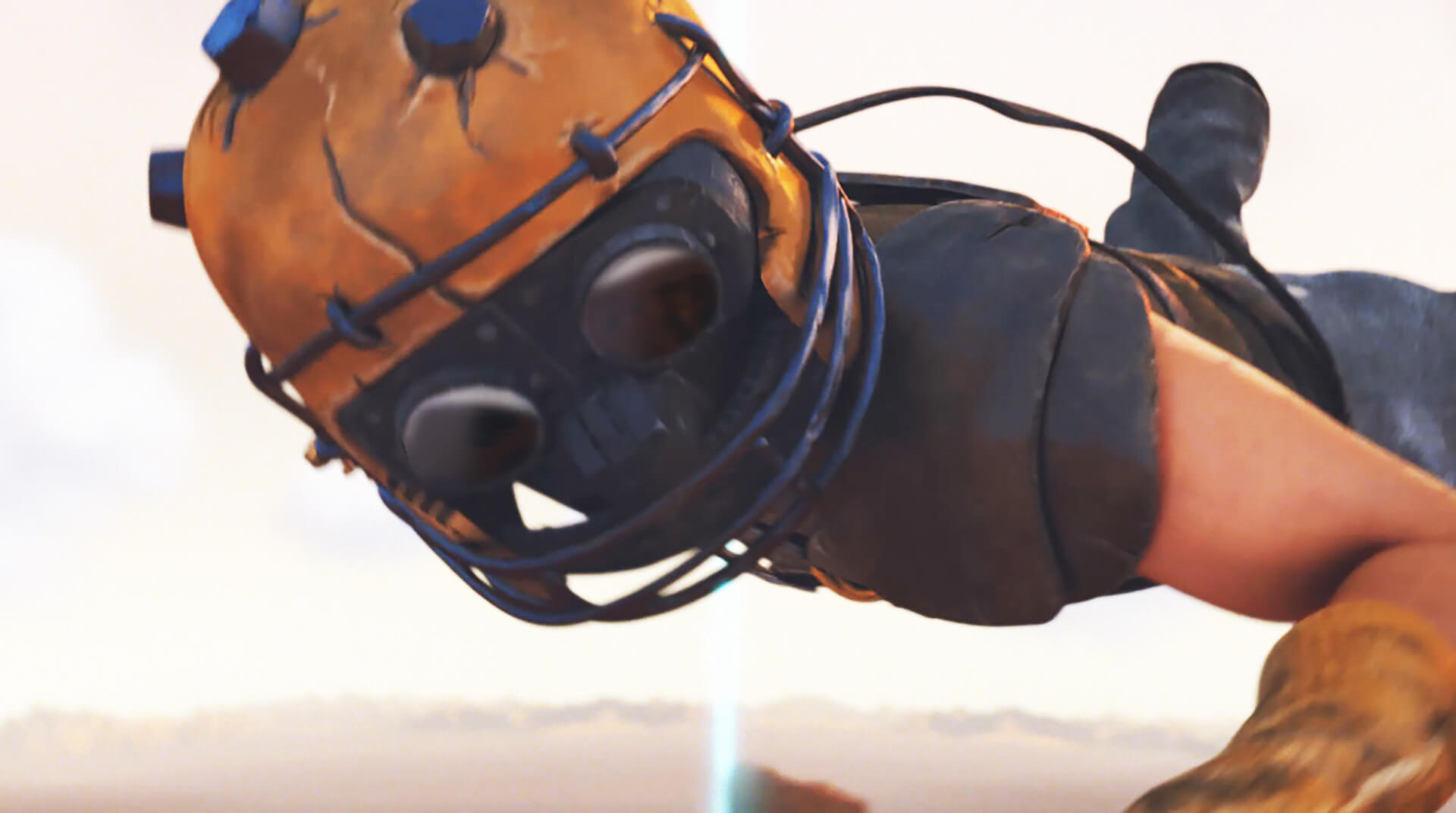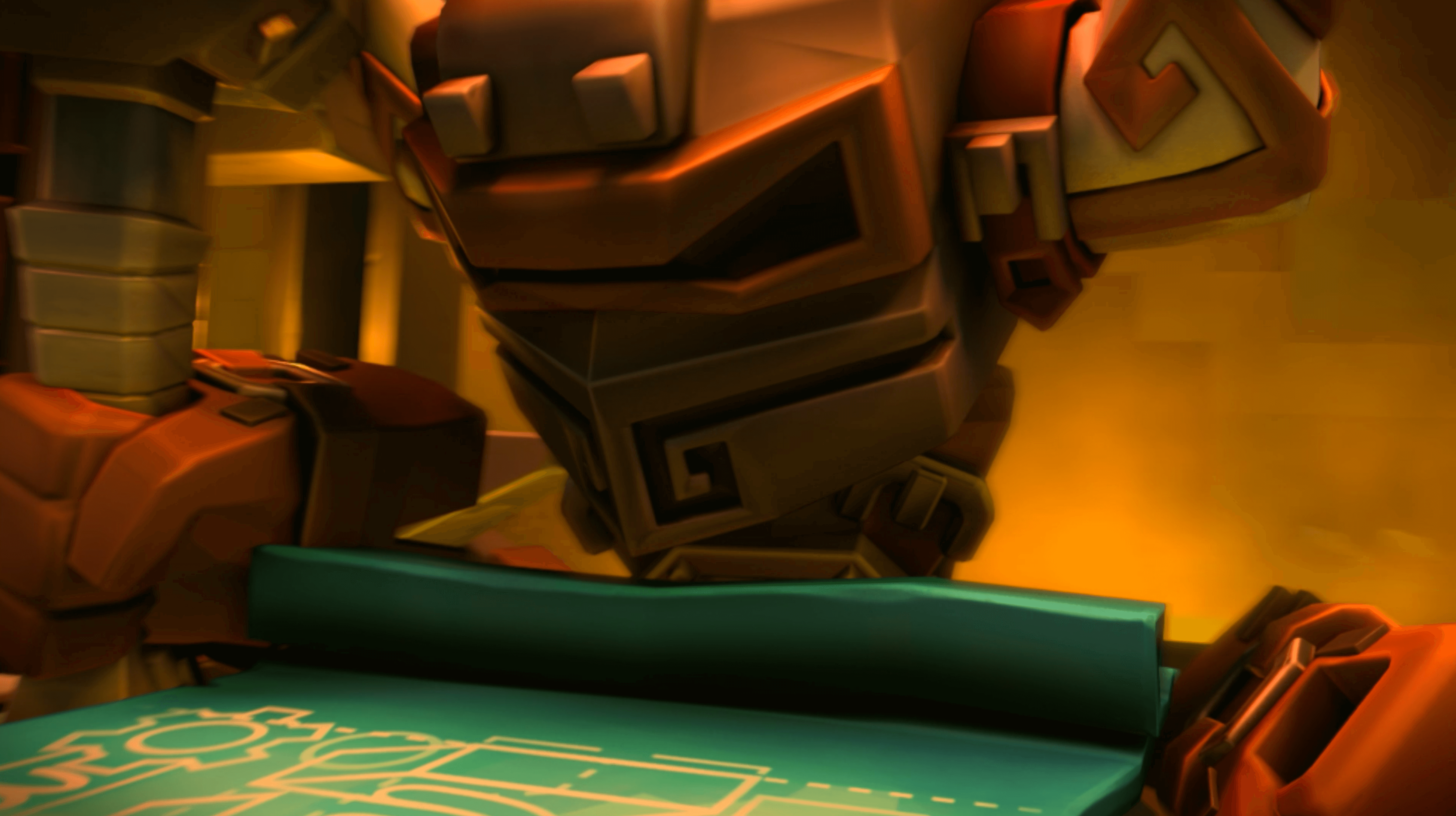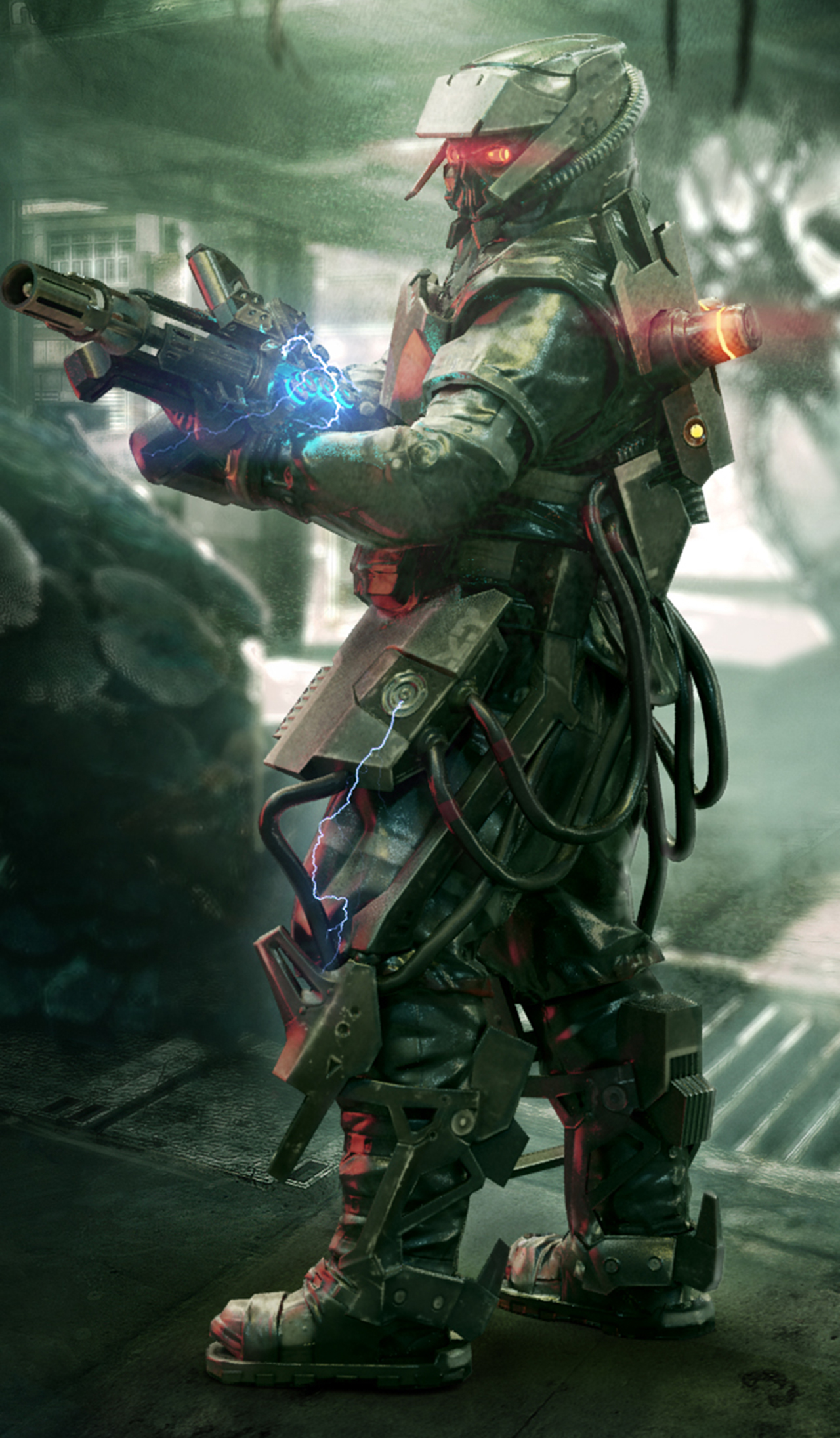 Computer Generated video game animation trailer still of futuristic gun fighting robot